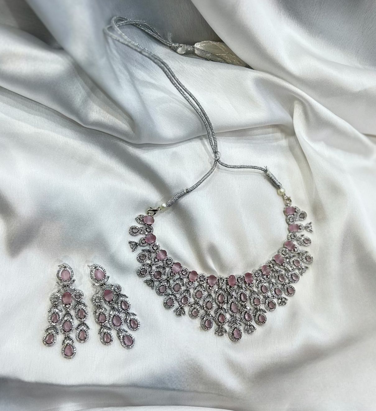 What You Get:- 1 N Rhodium Plated American Diamond Studded Silver Tone Necklaces With Matching 2 N Earrings