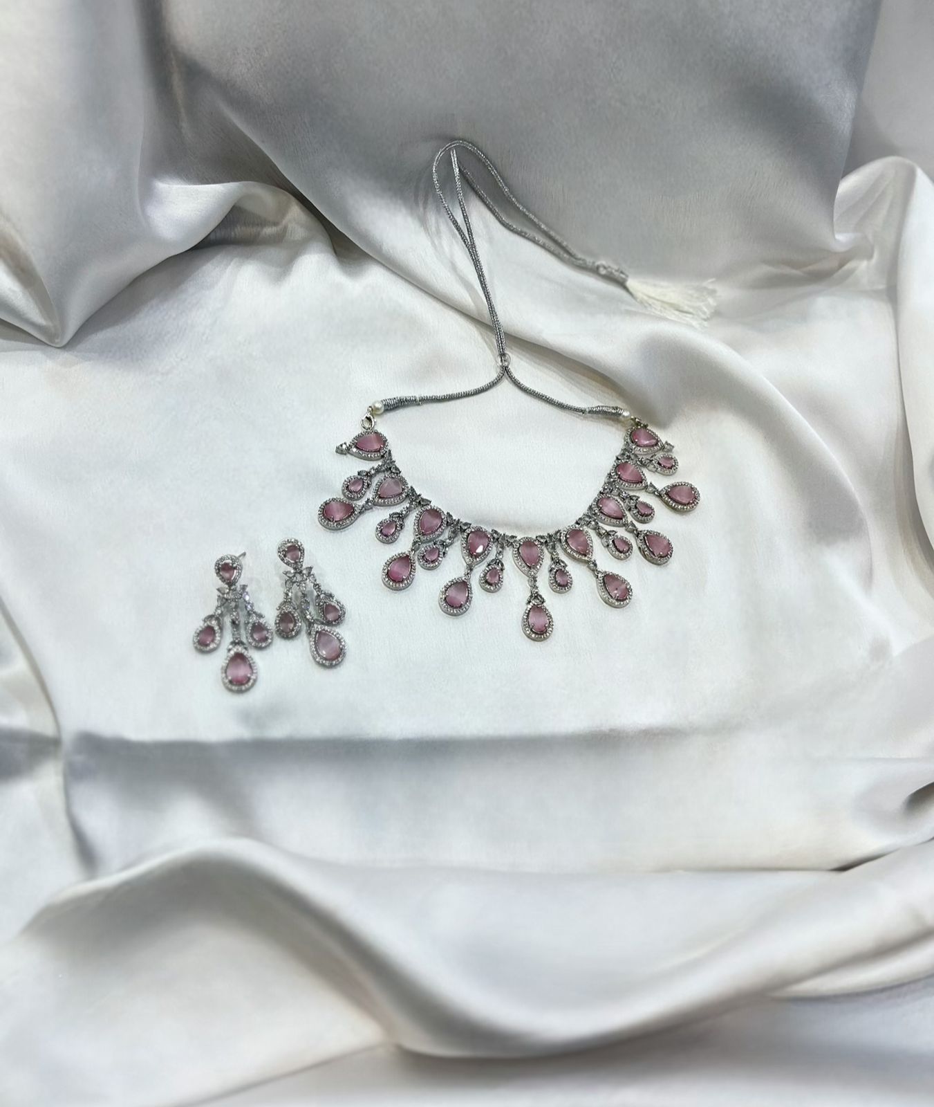 What You Get:- 1 N Rhodium Plated American Diamond Studded Silver Tone Necklaces With Matching 2 N Earrings