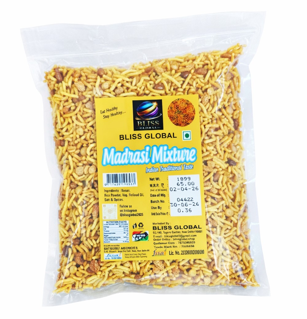 Indulge in the rich and authentic taste of South India with Bliss Global Madrasi Mixture. This flavorful snack is a delightful blend of crispy sev, peanuts, lentils, and aromatic spices, delivering a perfect balance of crunch and spice in every bite.