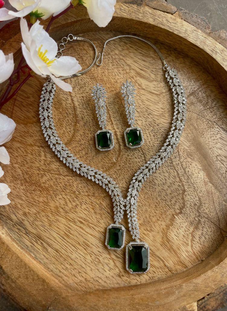 What You Get:- 1 N Rhodium Plated American Diamond Studded Silver Tone Necklaces With Matching 2 N Earrings