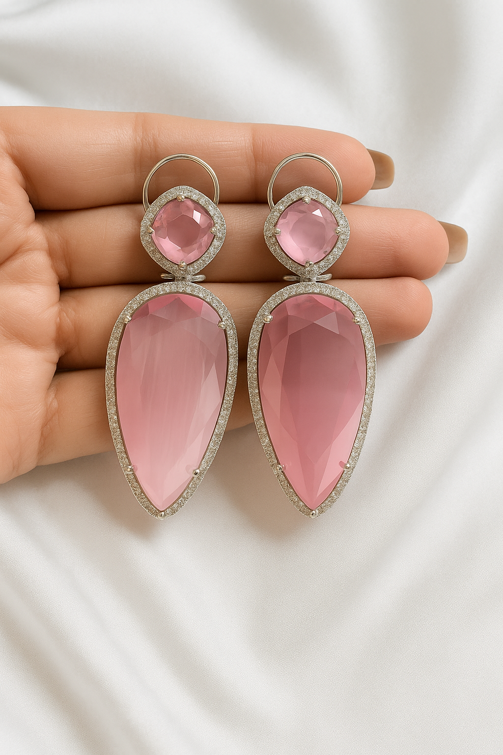 Pink shade stone and Diamond studded Dangling Statement Earrings for Women