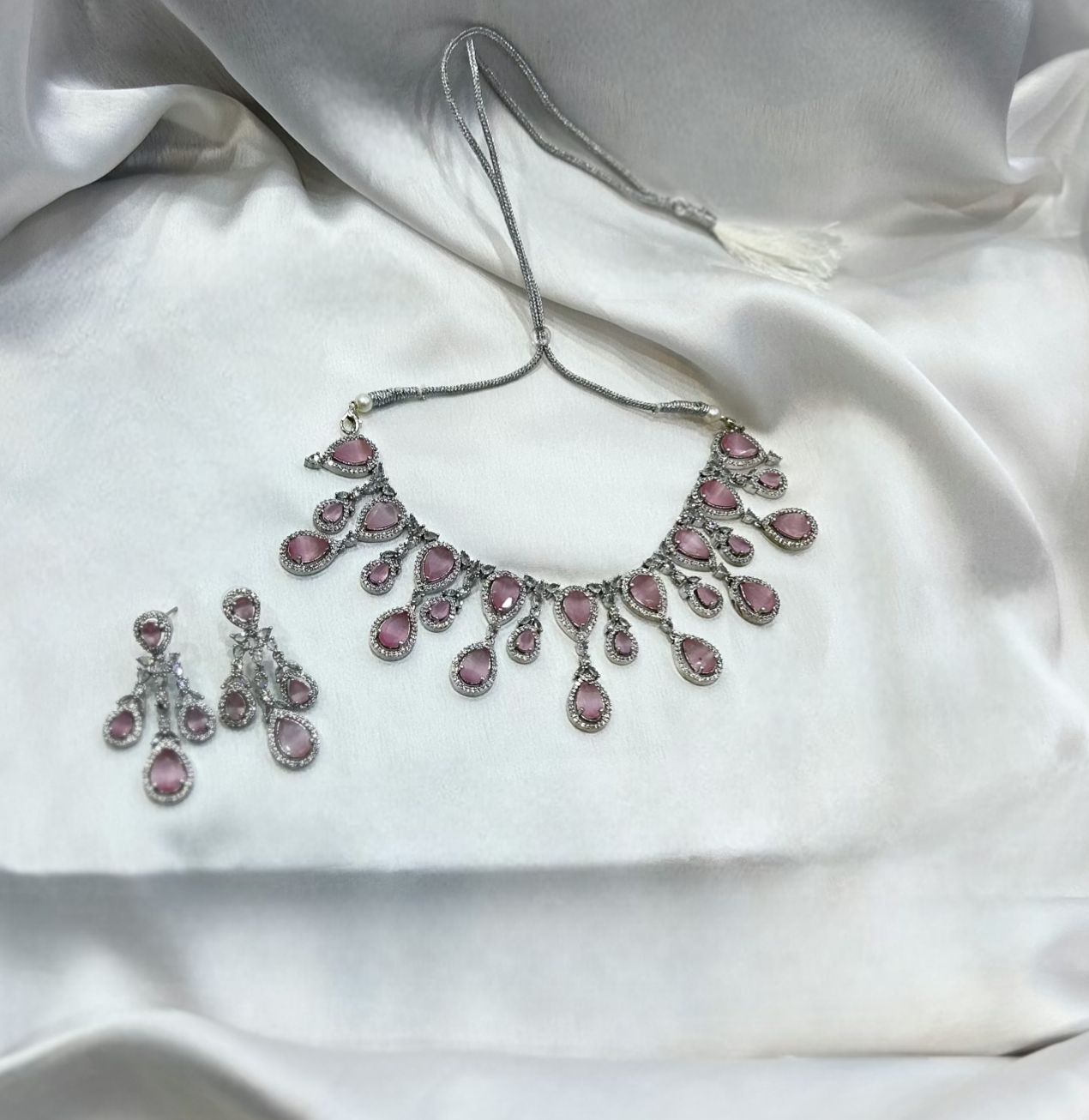 What You Get:- 1 N Rhodium Plated American Diamond Studded Silver Tone Necklaces With Matching 2 N Earrings