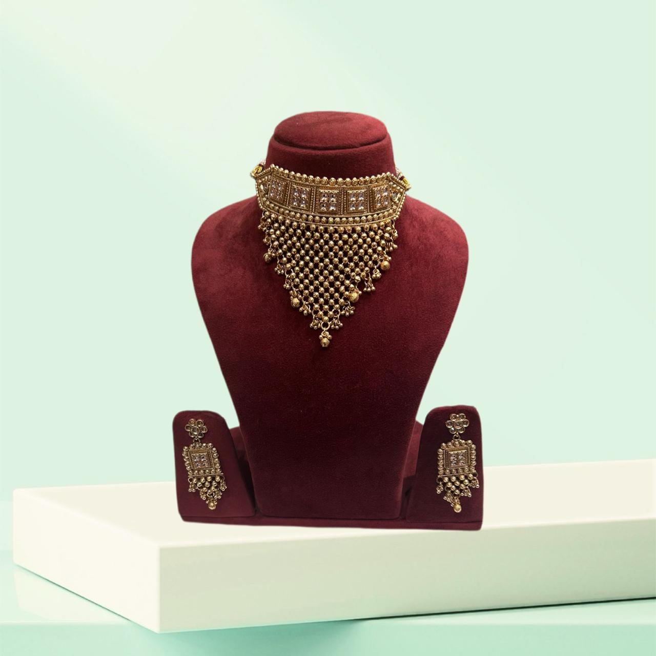 Introducing the Rajwadi Style Choker and Earrings Set- Indulge in the rich heritage and timeless elegance of Rajasthan with our exquisite Rajwadi Style Choker and Earrings Set. This stunning piece is meticulously crafted to capture the essence of royal Indian jewelry, perfect for adding a touch of regal sophistication to your special occasions or everyday style. The intricate detailing and vibrant colors create a captivating ensemble that's sure to turn heads. Made with high-quality brass, this set is both beautiful and durable, promising years of cherished wear.